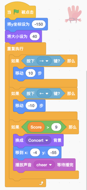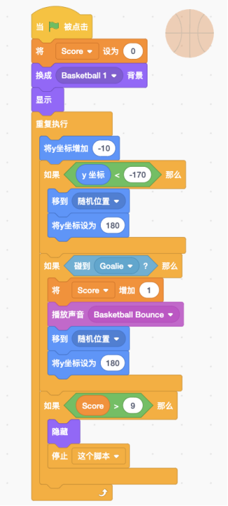 在这个游戏里,篮球会从空中随机掉落,而玩家需要控制角色移动,把篮球接住。看起来只是一个简单的小游戏,但在制作过程中,我们实际上用到了很多 Scratch 编程的核心知识。